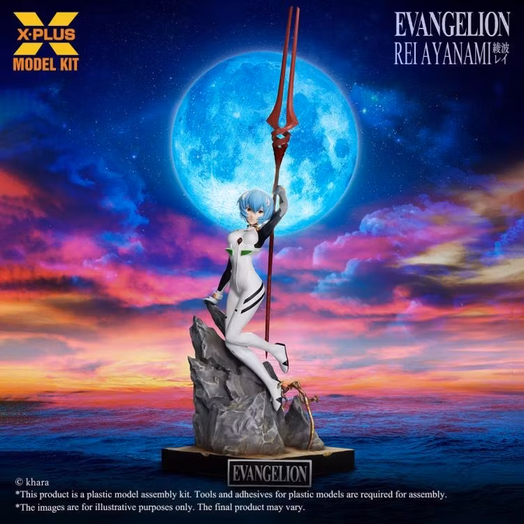 Rei Ayanami, the pilot of Evangelion Unit-00, is now available as a plastic model kit! Depicted holding the Spear of Longinus, she is sculpted as a vignette inspired by a moonlit, dreamlike scene, complete with sharp rock formations and a rusted faucet that evoke moments from the series. Her form-fitting plugsuit is recreated with finely crafted detailing, capturing Rei’s delicate and ethereal presence. The face part includes pre-applied tampo-printed eyes for added precision. Order yours today and grow your Evangelion collection!