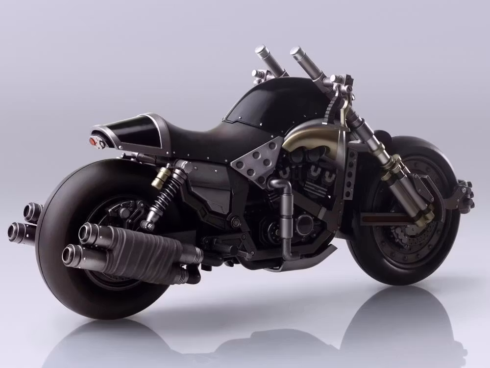 Skulpteringen är baserad på designen från den ursprungliga FINAL FANTASY VII med en tung kropp och däck, en svart metallram, distinkt styre och motorstruktur och andra funktioner som gör denna figur slagkraftig.