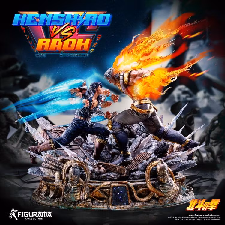 Figurama Collectors har fångat kraften och unika kampstilarna för varje Kenshiro och Raoh från Fist Of The North Star i denna exklusiva elitstaty. Statyn skildrar Kenshiro och Raohs sista kamp i Hokuto Shin Ken Dojo inkapslad av Nio Guardians och spillror, med många påskägg runt varje hörn av statyn.