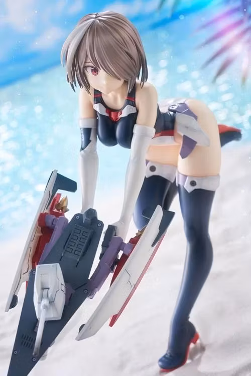 Her iconic hairstyle and expression are recreated from the plastic model kit and enhanced with greater detail. The armaments of the drone form have also been perfectly reproduced! In addition to the complex structure, attention has been paid to every detail, such as the burnt expression of the muzzle. Notice the tight wrinkles of the swimsuit and the subtle translucent effect over her abdomen as well.