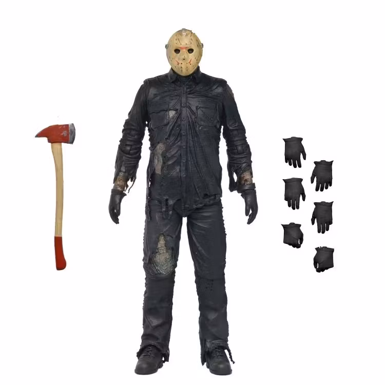Från succén Friday the 13th: The Game kommer en ny Jason Voorhees-figur från NECA! Denna fullt artikulerade actionfigur i 7-tums skala fångar den obevekliga slashern i all hans hotfulla prakt. Från hans väderbitna mask till hans stridsskadade kläder speglar varje skulpterad detalj det förfallna, vattendränkta utseendet som gjorde Del 8 Jason till en publikfavorit. Denna actionfigur inkluderar utbytbara händer, avtagbar mask och yxtillbehör och kommer i en samlarvänlig förpackning för fönsterlåda. Ett måste till din Jason-samling!