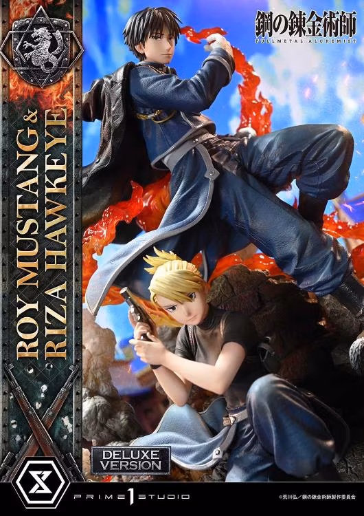 Vi tar dig tillbaka till den fängslande världen av Fullmetal Alchemist, där alkemi är en kraftfull vetenskap som styrs av lagen om likvärdigt utbyte. Går nu med i striden tillsammans med huvudsyskonen Edward och Alphonse på deras jakt på att avslöja de mörka hemligheterna bakom De vises sten, den legendariska duon Roy Mustang och Riza Hawkeye, väcks till liv i denna fängslande 19-tumsstaty.
