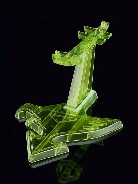 A ready-to-assemble Ken Washio, the Eagle (unpainted, adhesive required) wielding the Gatchaman Fencer in the same scale is also included. Hypershoot mode can be recreated by standing Ken Washio, the Eagle on top of the aircraft. A base featuring the Science Ninja Team's Bird mark motif is also included, allowing the model to be displayed mid-flight. The base of the figure has been redesigned with a translucent color inspired by the Hypershoot effect.
