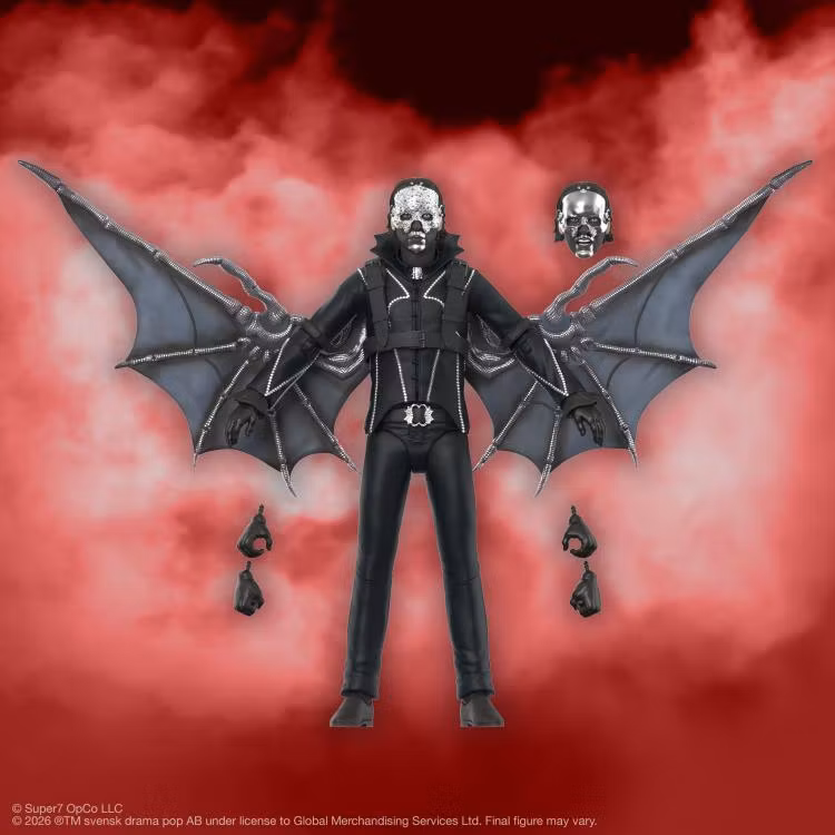 This figure is 7” scale and has 19 points of articulation for ultimate pose-ability. Accessories include 2 interchangeable heads with either a jeweled or silver mask, bat wings, a mic stand, and multiple interchangeable hands. Packaged in a window box with artwork inspired by the Ghost aesthetic, this figure remains perpetually perfect for the center stage of your collection. So hurry to collect this Papa V Perpetua ULTIMATES! Figure. Don’t let a missed opportunity eat away at you forever.