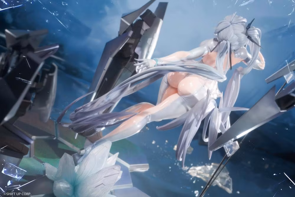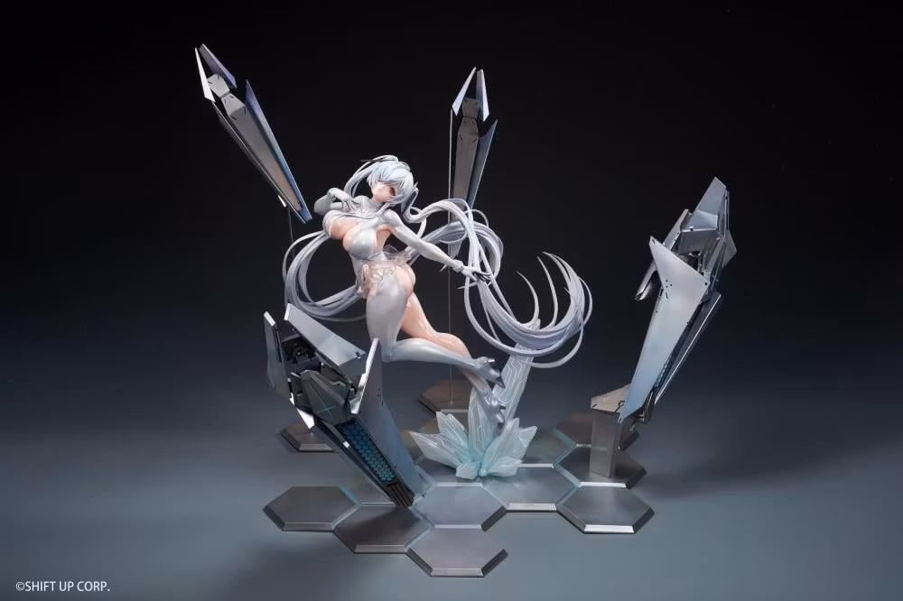 From the popular Goddess of Victory: Nikke video game comes the Cinderella (Deluxe Edition) 1/4 scale figure by Hobby Sakura! This impressive figure is just under 17 inches tall and displays Cinderella leaping in the air while her hair blows in the wind around her.