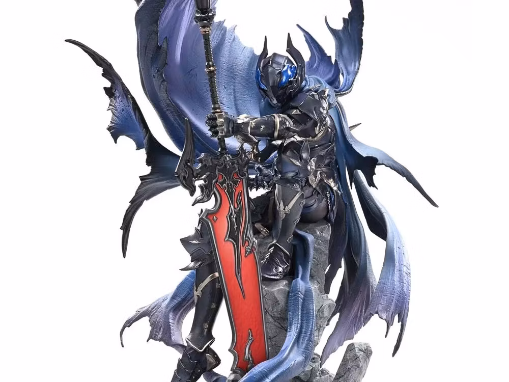 Hans vindrufsiga hår och genomträngande blick är bara början. Varje skulpterad och målad detalj återges med yttersta precision. Rustningen är intrikat byggd, vilket till och med antyder hur den kan tas bort. Mantelns djupblå och lila färger är skuggade för att reflektera en dynamisk ljuskälla, medan det stora svärdet – troligen den otäckta formen av den svarta drakens käftar – glänser med brännande karmosinrött och en skarp, dödlig kant. Varje beslut hedrar det ursprungliga konstverket och fångar stoltheten hos en ädel och ståndaktig riddare.
