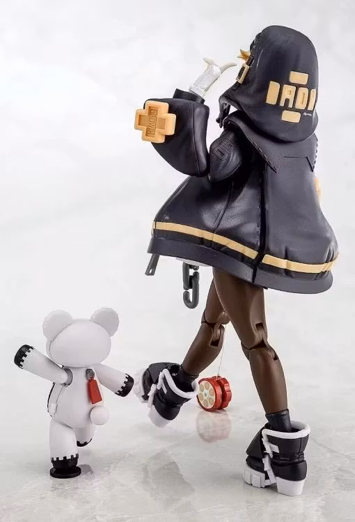 From GUILTY GEAR -STRIVE- comes a black color scheme of the popular Bridget articulated plastic model kit! This version retains the sculpting and articulation of the original version, while bringing to life the popular black color scheme from the game. Bridget's cool and stylish charm has been brought to life in plastic model form, a fresh take on her usual cheerful and cute aura.