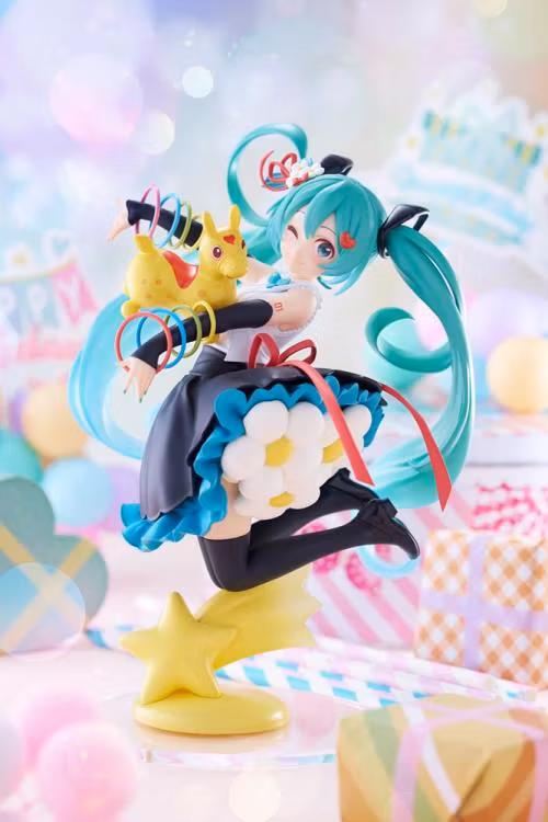 From the Hatsune Miku series comes this PVC Statue. She stands 20 cm tall and comes with base in a printed box packaging.