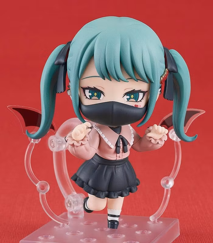Hatsune Miku, som hon syns i musikvideon till låten The Vampire av DECO*27, har förvandlats till en Nendoroid! Denna Nendoroid innehåller tre ansiktsplåtar: ett blinkande ansikte, ett gråtande ansikte och ett utstickande ansikte. Hatsune Miku levereras också med extra delar och tillbehör för att skapa roliga poser med denna söta vampyr! Se till att lägga till denna djävulskt bedårande version av Miku i din samling!