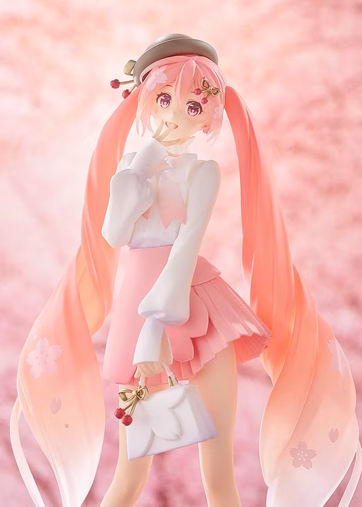 - Delicate sculpting and paintwork bring the lovely Sakura Miku, as illustrated by Rella, to life in beautiful detail.