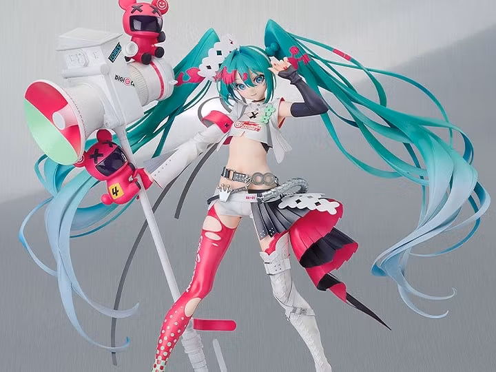 The official character of the 2022 Hatsune Miku GT Project, Racing Miku 2022 Ver., is now a 1/7 scale figure! The original 2022 Racing Miku illustration by neco has been carefully brought to life in eye-popping detail. Her dynamic pose and fit physique are sure to charm Racing Miku fans. Don't miss the fluttering flag or her dazzling smile either! Be sure to add the lively Racing Miku to your collection!