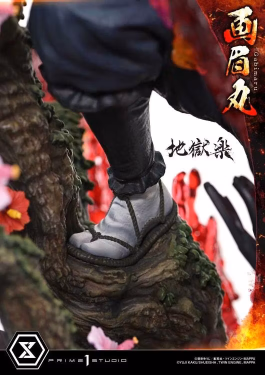 This 1/4 scale statue captures the intensity of his battles in stunning detail. The motif chosen is none other than his signature technique, the ninpo Hiboshi. Gabimaru and the monstrous Soshin are arranged in a dynamic diagonal composition, engulfed in swirling flames and a frame of blood. The contrast between Gabimaru’s nimble airborne pose and the stillness of his opponent emphasizes the ruthless nature of their clash.