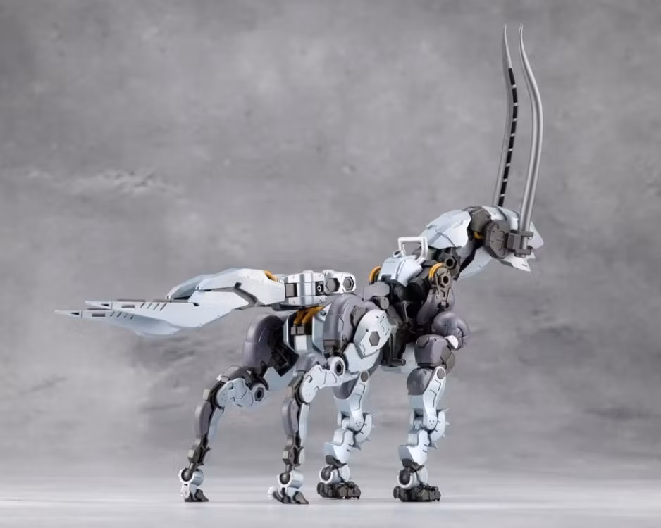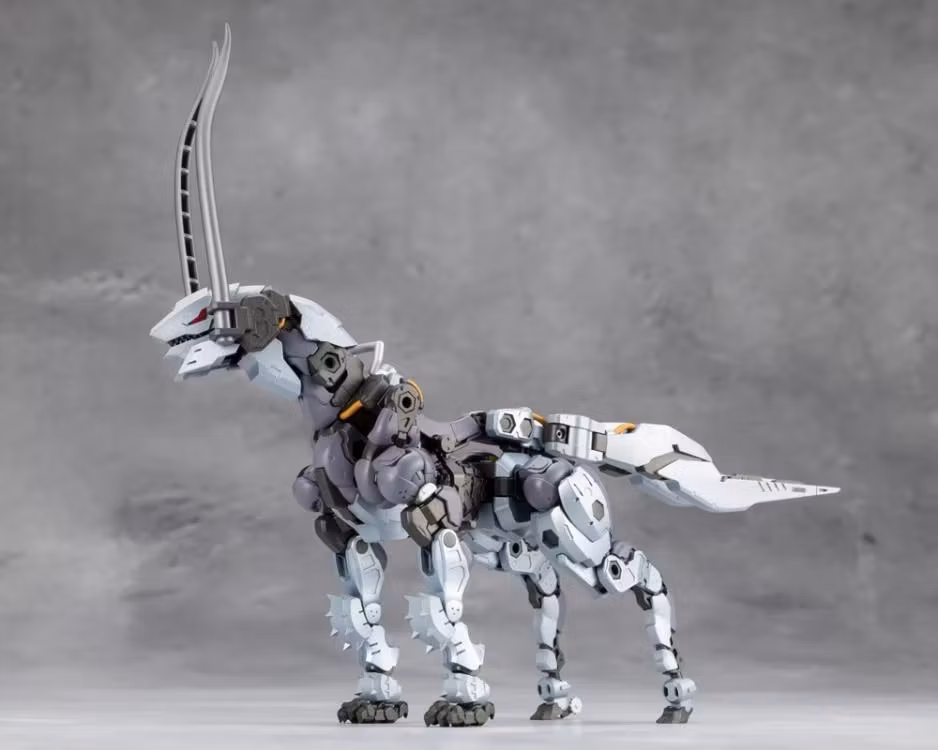 Three types of horns are included, allowing users to customize the newly sculpted heads. The jaw can also open and close. The ankle parts of the forelegs are newly sculpted, allowing users to enjoy different details. The details of the prosthetic muscles have been carefully sculpted, resulting in a more organic silhouette compared to other third-generation HEXA GEAR. By swapping out the head unit and step unit, the Governor can be mounted in front like a Centaur.