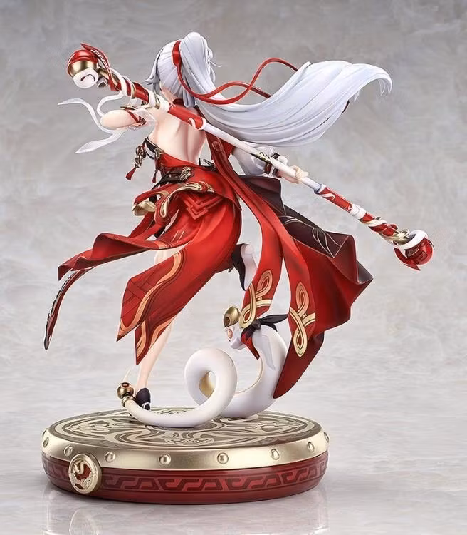 Färgschemat blandar kinesiska motiv med en bepansrad design, och uppnår intrikata materialtexturer och visuella effekter genom sofistikerade målningstekniker som inkorporerar metallisk färgsättning, pärlfärg och övergångar. De röda kläderna har speciell målning för att uttrycka en glänsande glans som påminner om Kianas utseende i spelet. Varje detalj—från guldmönstren på dräkten och tygets veck till den naturliga flytningen i människokroppen—har noggrant tillverkats.