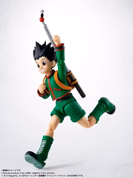 Från S.H.Figuarts HUNTER×HUNTERHUNTER-serien kommer ett Option Parts Set för de separat sålda Gon och Killua. Föremål som finns med i Hunter Exam-arket ingår som ett alternativt delset! Den kommer också med en mängd utbytbara uttrycksdelar och handdelar, vilket gör att du kan återskapa olika scener från serien.