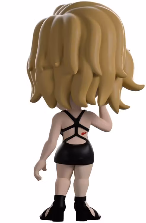 This girl’s bringing the party to end all parties to Youtooz! Standing at 4.9 inches tall, her hand raised to her head as dirty blonde hair falls to either side of a makeup smudged face that’s smeared with blood. She’s dressed like the party never ended in a short black dress with thin strapped heels, as vibrant red blood is splotched down her left side.