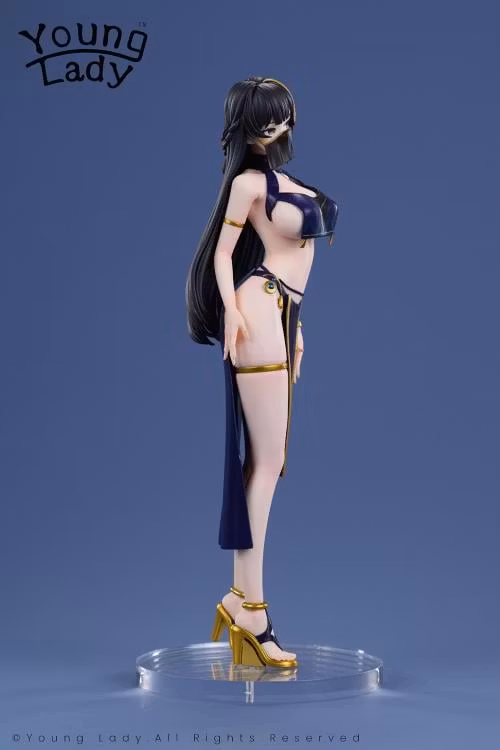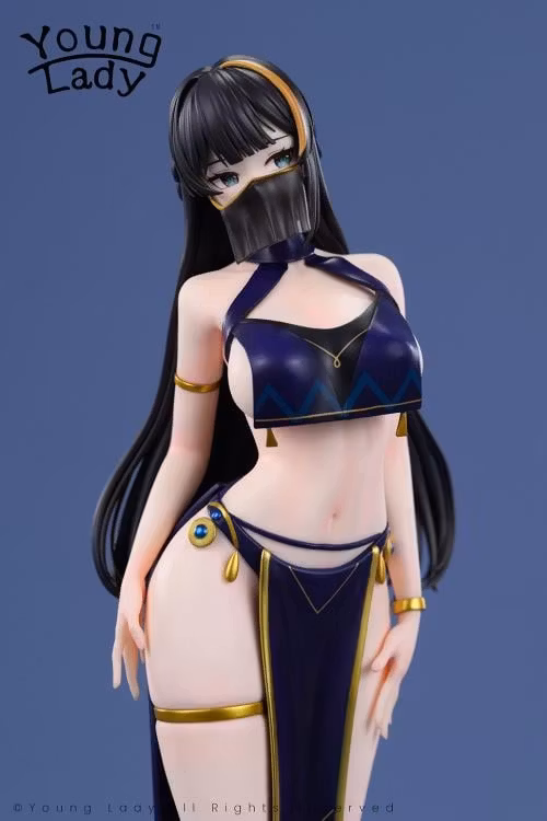 From Young Lady comes the Desert Princess Bell! Desert Princess Bell wears a two-piece black outfit with high heels and a veil. The figure stands over 11 inches tall with gold accent pieces and long black hair.