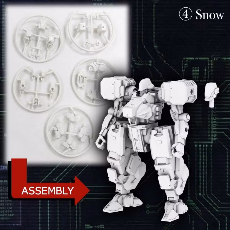 The KIKOU SENSEN 1/100th scale plastic model kit series is a snap-fit plastic model kit made of ABS. Its first wave is PARACRAX, the latest cutting edge Vinfant fron the NAU force. The plastic model kit is 6cm tall aftter assembly, and features total of 16 points of articulation. Its upper body, arms, and lower body are interchangeable with other Vinfants within the series.