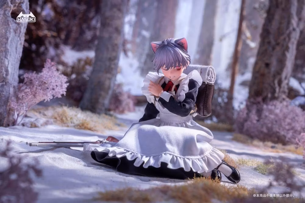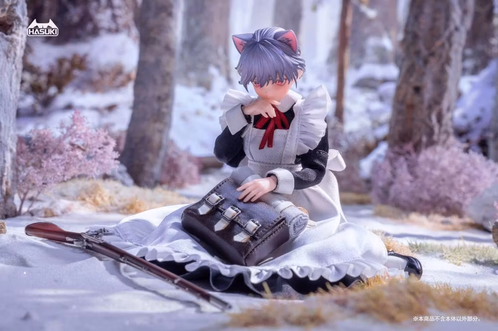 Expand your figure collection with the Pocket Art Series Musketeer Fiqizi 1/12 scale action figure by Hasuki. This highly posable action figure includes additional parts and accessories to create fun poses or scenes with the character. Musketeer Fiqizi is seen wearing a maid's outfit while carrying a backpack and rifle. Don't miss out on adding this impressive figure to your collection!