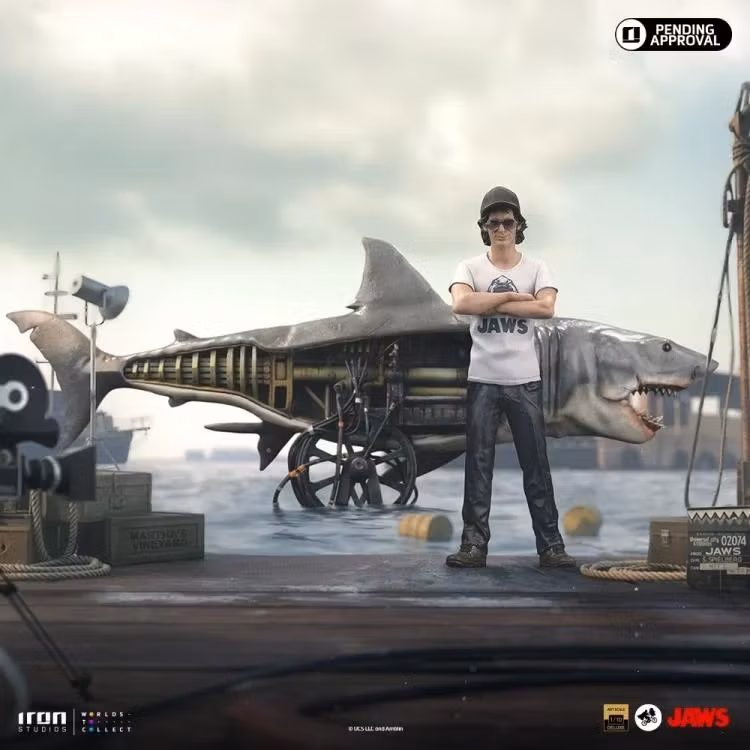 Spielberg dyker upp i en klassisk regipose, bredvid den ikoniska mekaniska hajen, återskapad med imponerande precision. En mästerlig hyllning till filmen som omdefinierade filmen och till regissören som blev en levande legend. Fylld med filmiska detaljer är denna staty en skatt för filmälskare.