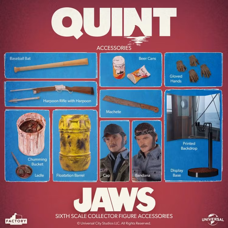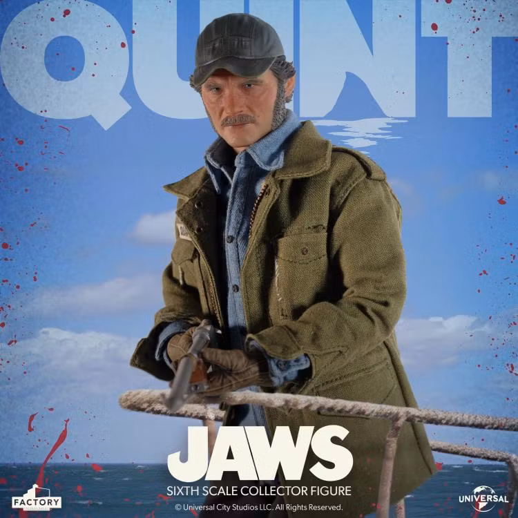All aboard the Orca with the Jaws Quint sixth-scale collector figure. The figure features a fully realized portrait of the hardened captain, Quint, so memorably portrayed by Robert Shaw.