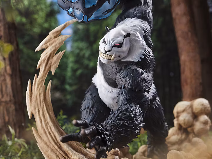 Pandas muskulösa kropp och borstiga päls har skulpterats omsorgsfullt, och den virvlande dammeffekten uttrycker stridens dynamik. Tydliga delar har använts för att återskapa den stora trolldomseffekten på hans högra hand som avbildas i animationen.