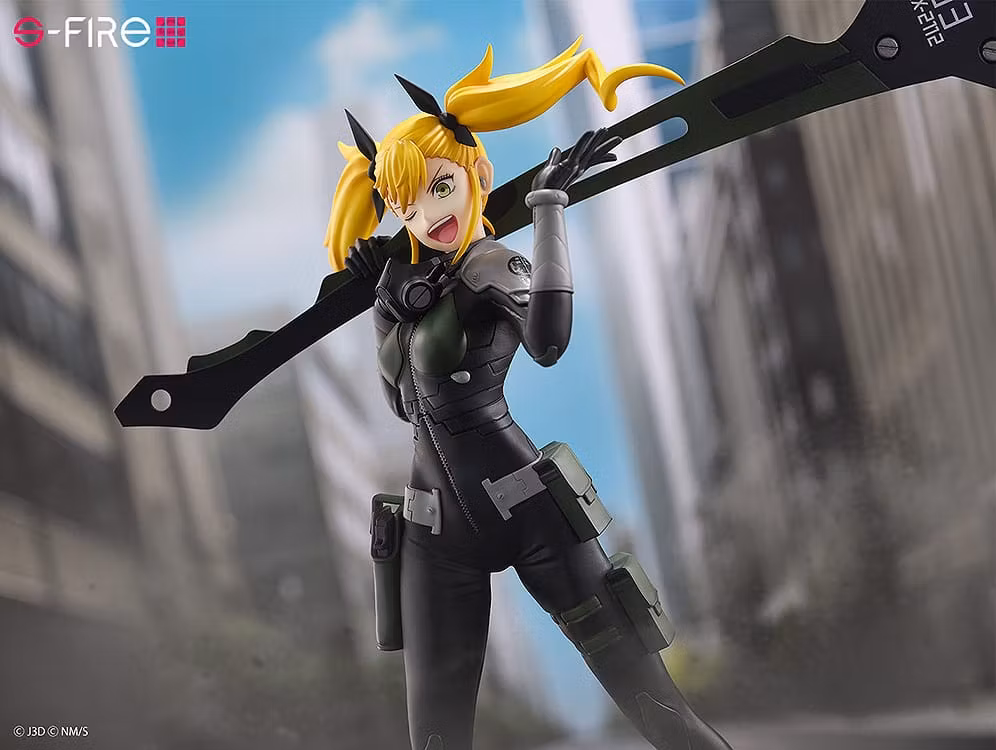 From the anime Kaiju No. 8, S-FIRE presents a 1/7th scale figure of Kikoru Shinomiya. Kikoru, wielding a special weapon that is larger than her height, has been sculpted in a pose that gives a sense of power. The detailed suit of the Defense Force has been carefully reproduced with meticulous coloring and shading to give it a texture and three-dimensional feel. Note also the aggressive and brave expression on Kikoru's face. Enjoy this figure together with the "Kaiju No. 8", "Soshiro Hoshina", and "Mina Ashiro" figures from the S-FIRE Kaiju No. 8 figure series.