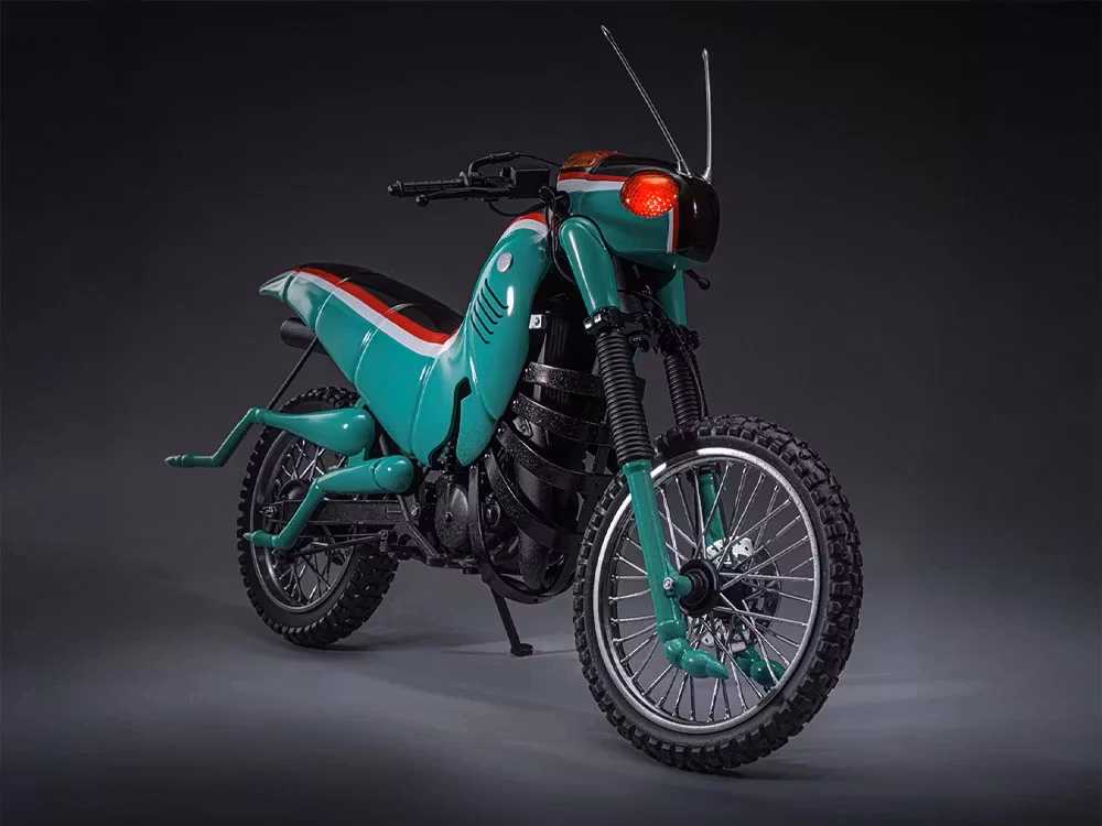 Hot Toys is thrilled to present the Battle Hopper Sixth Scale Collectible Vehicle, a faithful and finely detailed tribute to this iconic Rider Machine. Measuring approximately 36 cm long, 14 cm wide, and 21 cm tall, the model showcases authentic mechanical features, from the engine, frame, and exhaust to side stands. Battle Hopper is finely painted in shiny green, red, and white color schemes. The grasshopper-inspired exterior includes long antennae, grasshopper legs, and headlights with LED-lit red light that imitates the eyes. Features such as rear spring suspension and rotatable wheels with dirt-weathered tires show expert craftsmanship.