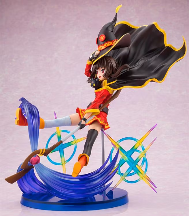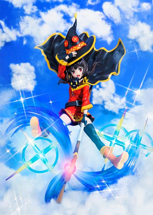 Från animeserien "KonSuba: God's Blessing on this Wonderful World!" kommer en figur i skala 1/7 av Megumin i en pose från den andra säsongens öppningssekvens när hon stiger ner från himlen medan hon avfyrar sin explosionsmagi.