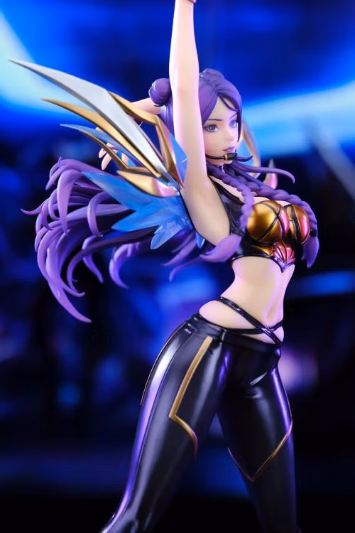 Från League of Legends videospel kommer K/DA Kai'Sa figuren i skala 1/7 från Apex! Den här figuren är cirka 12 tum lång och visar Kai'Sa i hennes K/DA-skinn från spelet i en populär pose. Kai'Sa ses med dynamiskt lila hår och med vingar på ryggen, när hon poserar redo för rampljuset. Denna figur inkluderar en bonusnyckelring av Kai'Sa i hennes K/DA-skal. Missa inte att lägga till denna figur i din samling!