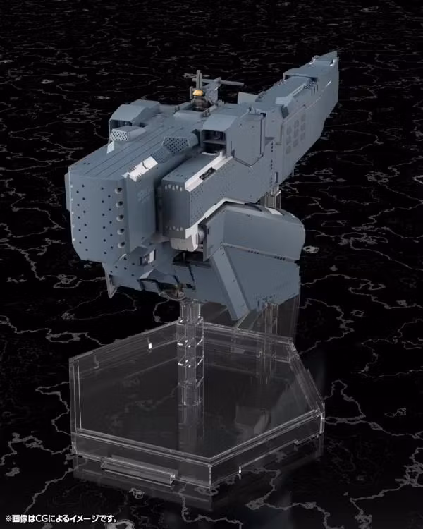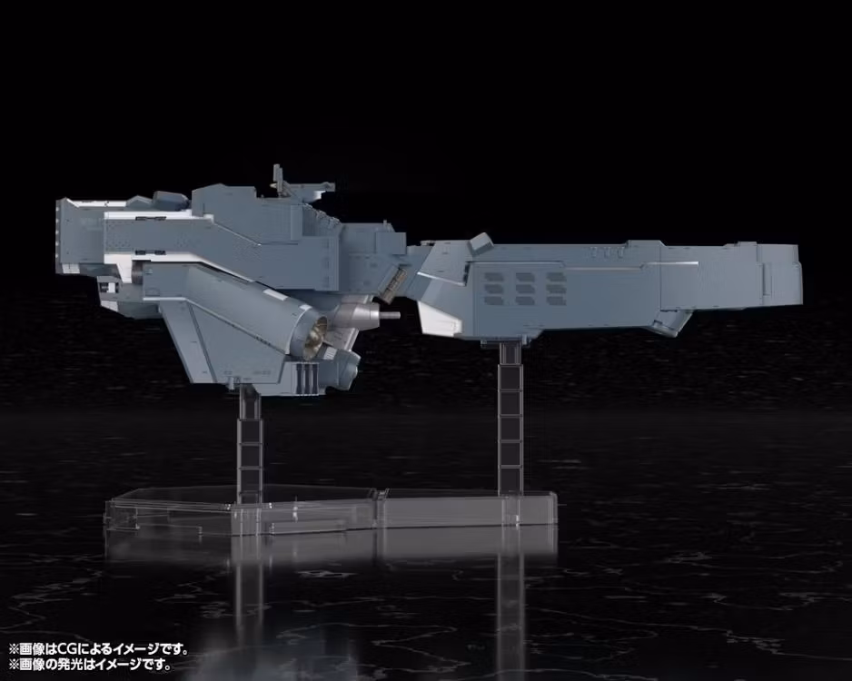 The approx. 900m warship has been recreated at 1/3000 scale, resulting in a model around 300mm in length. The design was supervised by original mecha designer Shinji Usui, with the complicated 3D shape based on various materials for a perfect recreation.