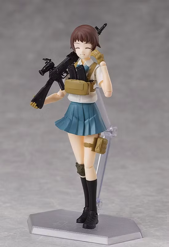 Set up the original armed JK! Variant B features a low-profile style. From the military high school girl series "Little Armory" comes unnamed armed JK characters based on the figma Styles format! Armed JK Variant B features short hair, a chest rig and trail running shoes, making for a low profile style. Spare magazines for automatic weapons and handguns can be stored on the minimalistic chest rig. It is the perfect setup for missions that require maneuverability. Combine other Armed JK variants for even more fun! The figure is standard figma size, allowing you to switch head parts with other characters! (*1) Head and limbs that attach with figma joints are interchangeable with other separately sold Armed JK variant figures. In addition to the armaments included with the product, armamenets from the separately sold loadout set can be displayed with the figure. Pick your favorite loadout and assemble! (*2) A 1/12 scale G19 type automatic pistol is included. An articulated figma stand is included to display the figma in a variety of poses. *1 Not compatible with all figma. *2 Use rubber adhesive to secure equipment as necessary. Some parts cannot be combined due to incompatible shapes and positions