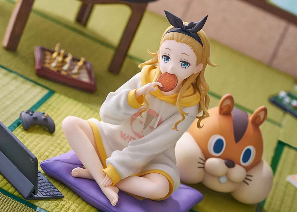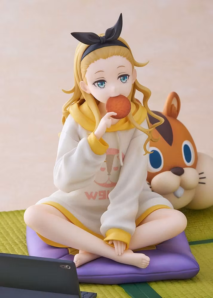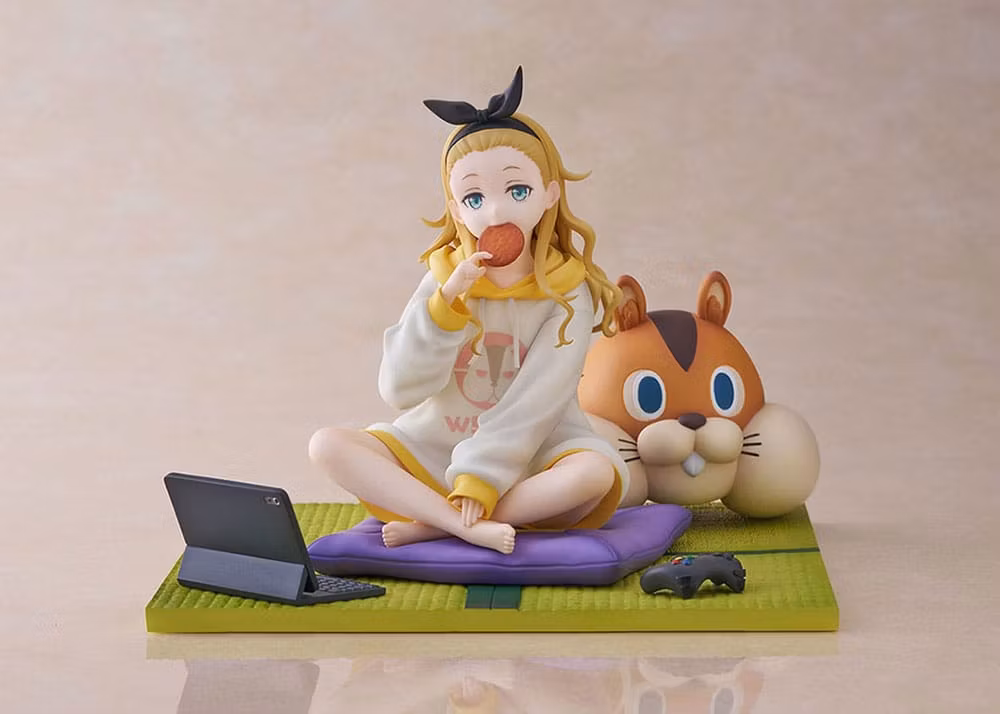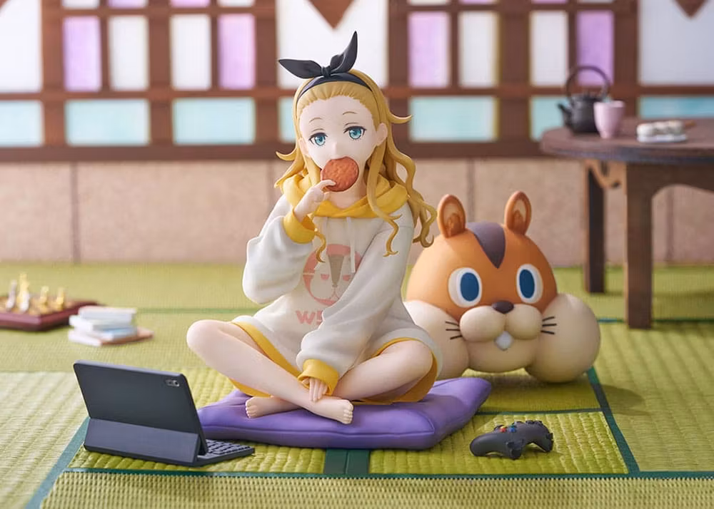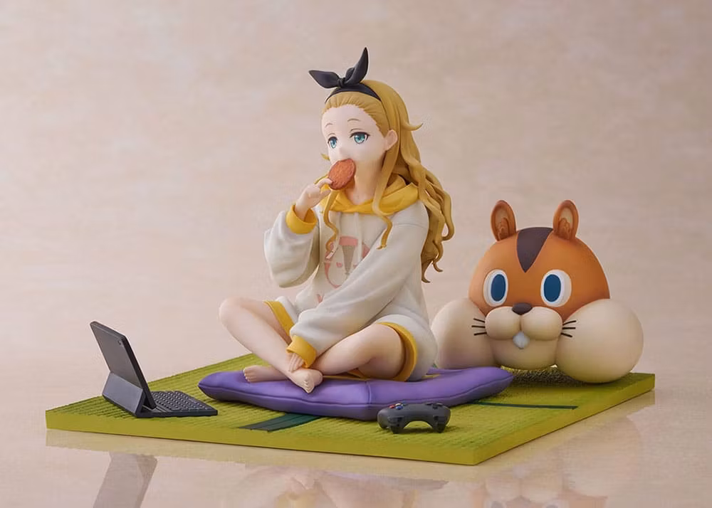 En scen från Kurumis dagliga liv fångas när hon kopplar av på tatami. Ansiktsuttrycket när hon biter i en risknäcke och stirrar på den med en tom blick ger intrycket av oskuld, även om hennes ålder är okänd. Hennes varumärke överdimensionerade hoodie och vågigt hår är en charmig och bedårande finish. Varje motiv av gosedjuret 'valnöt' med en stark närvaro, kudden och surfplattan kan placeras fritt, så att du kan njuta av din favoritkombination. Missa inte detta tillfälle att lägga till hennes avkopplande stunder till hands.