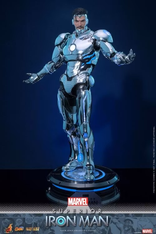 Hot Toys is thrilled to announce the 1/6th scale Superior Iron Man Collectible Figure. Crafted with premium die-cast materials, the armor is coated in gleaming metallic silver with an electroplating finish. The removable chest armor reveals intricate internal mechanics, offering a visual glimpse into the mechanized wonders beneath.