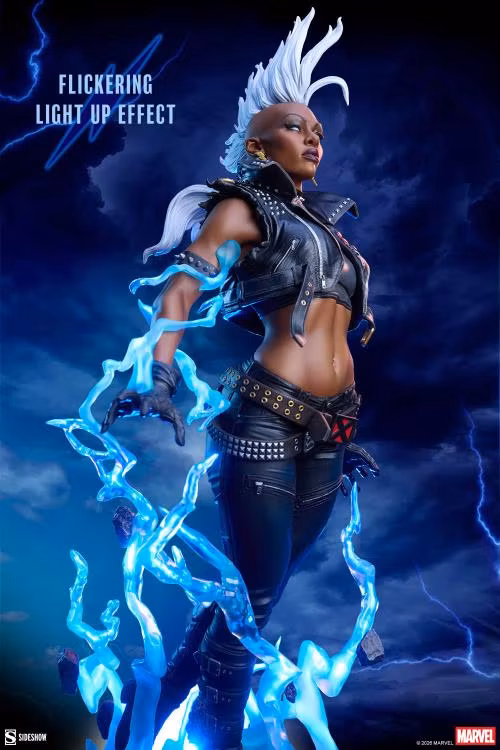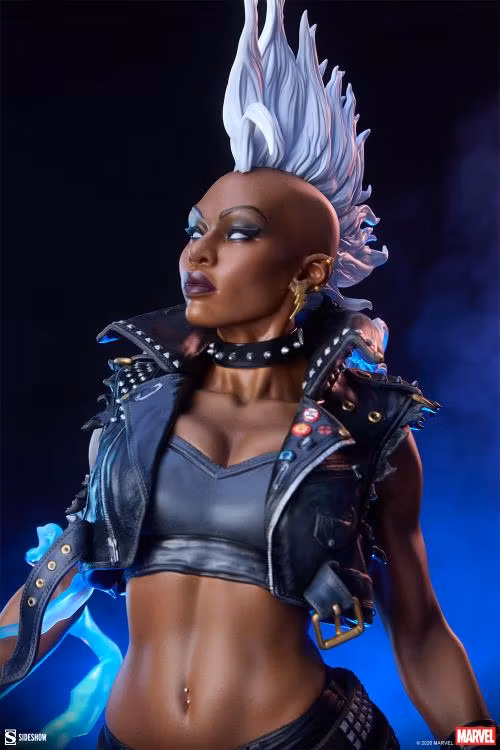 Inspirerad av karaktärens framträdande i Uncanny X-Men #173, visar denna fullt skulpterade X-Men-samlarfigur upp Storm i hennes ikoniska helsvarta, helläder-punkdräkt. Påverkad av tidigt 80-tals anarkiestetik inkluderar hennes outfit åtsittande byxor, knähöga stövlar, en magtröja och en kort, taggig väst med knappar och säkerhetsnålar på slagen samt en nittad blixt på ryggen.