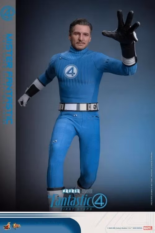 Figuren har en nyutvecklad huvudskulptur med separata rullande ögonglober och minutiöst skulpterat svart hår med grånande slingor, vilket speglar Pedro Pascals likhet på skärmen. Klädd i en retrofuturistisk Fantastic Four-uniform, komplett med ett matchande bälte och stövlar, fångar den vackert stilen som ses i filmen. Den levereras med sex utbytbara händer för ledad kropp och fyra utbytbara händer för skulpterad statykropp, vilket möjliggör en rad uttrycksfulla poser. Han står stolt på toppen av ett specialdesignat figurställ och är redo att försvara jorden med sin intelligens och kraft.