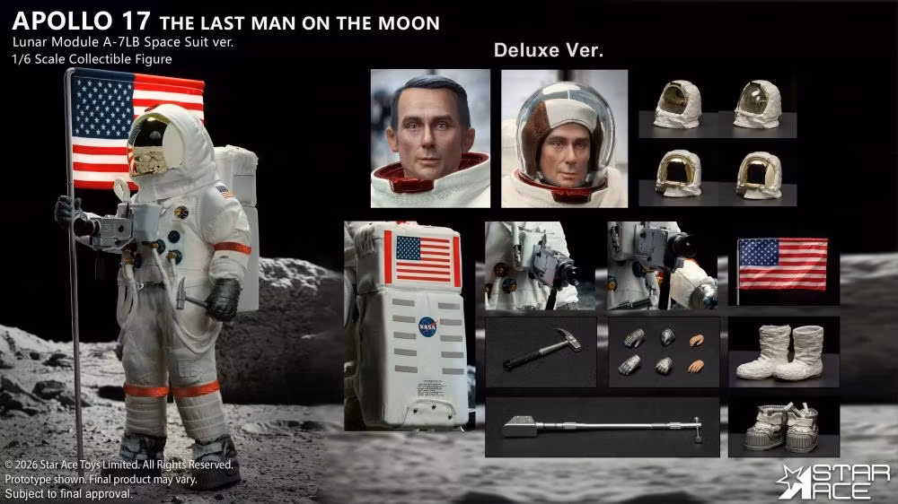 Introducing the 1:6 Scale Apollo 17 Eugene Cernan Collector’s Edition—an extraordinarily detailed, museum-grade articulated figure celebrating Commander Eugene Cernan, the last human to walk on the lunar surface.