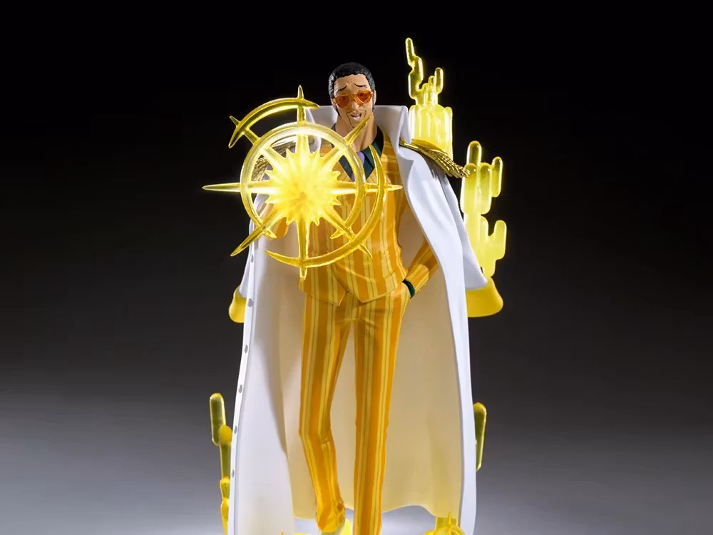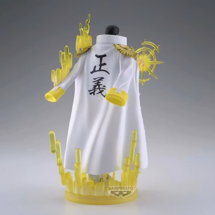 From Banpresto’s The Shukko line comes a special edition figure of Borsalino, the enigmatic and powerful Admiral from One Piece! Captured in a powerful and commanding stance, this figure perfectly embodies Kizaru’s calm demeanor paired with his overwhelming light-speed might. With exquisite detailing on his signature yellow suit, sunglasses, and glowing energy effects, this special edition piece is a brilliant tribute to one of the Marines’ most formidable forces.