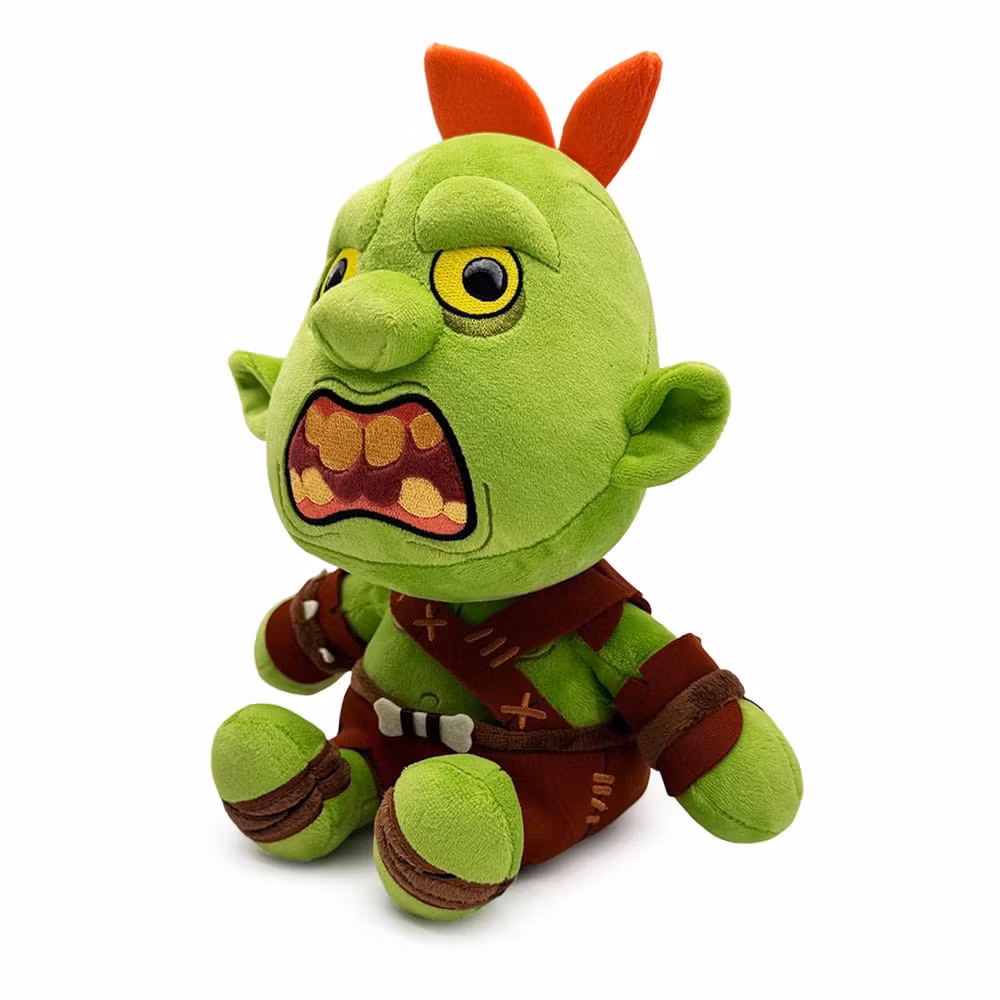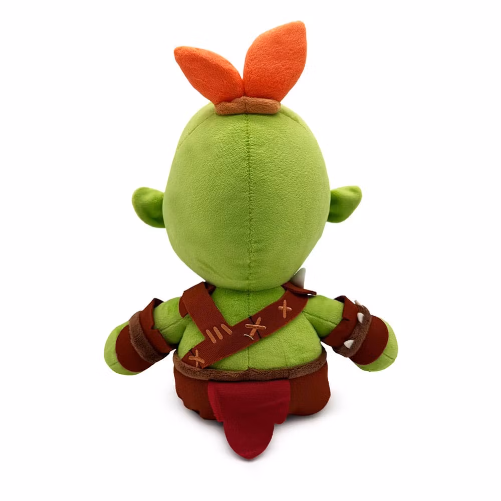 Åh nej! En ny våg av orcher har dykt upp! Skynda dig, skydda sprickan! Sittande på 9 inches lång med munnen öppen för att avslöja en serie grova, runda tänder som sticker ut från rosa tandkött, stirrar denna orcs gula ögon ut i olika riktningar ovanför en bred näsa som orange hår fladdrar ut från toppen av huvudet. De bär en enkel lätt rustning som korsar bröstet i två band och har en spik på axeln, och matchande handledshängslen sveper sig runt armarna medan en rödbrun trasa hänger från remmen runt midjan. Denna plysch är packad till sömmarna med 100% PP bomull och är gjord av det mjukaste minkymaterialet med accenter av filt, helt perfekt för att gosa eller försvara sig med!