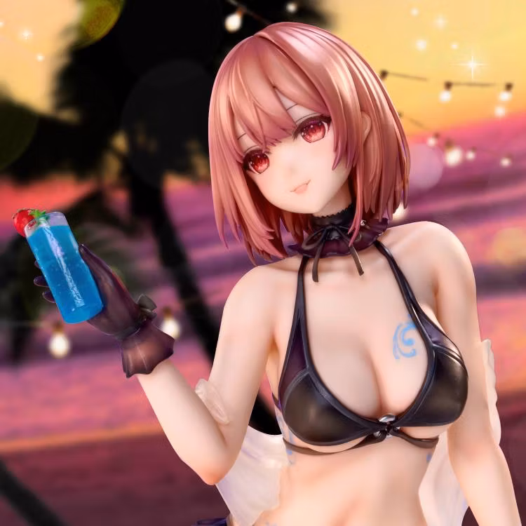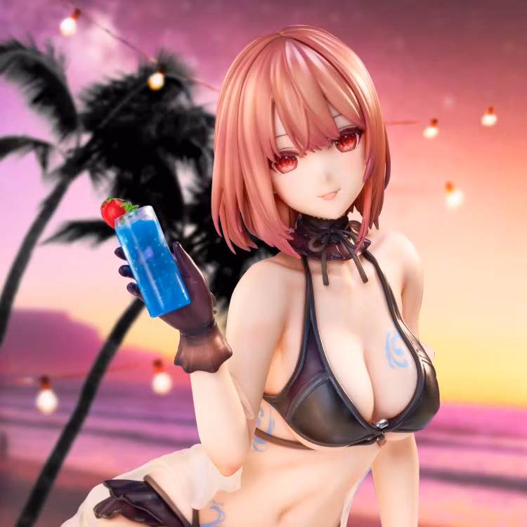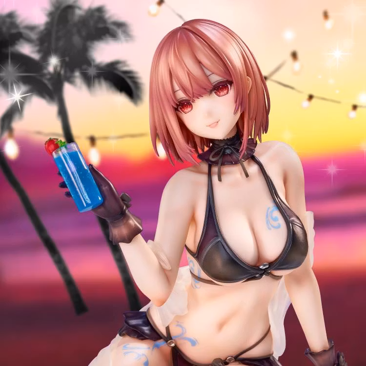 Från den populära illustratören Necomi kommer en ny figur i Season x Body Art-serien: One More Drink for the Vacation! Klädd i en snygg bikini håller denna strandgäst en läcker blå drink med ett gigantiskt leende på läpparna när hon njuter av solen och surfar. Klädd i ett avtagbart genomskinligt draperi kommer den här figuren att ge din samling lite sommarvibbar. Beställ din idag!