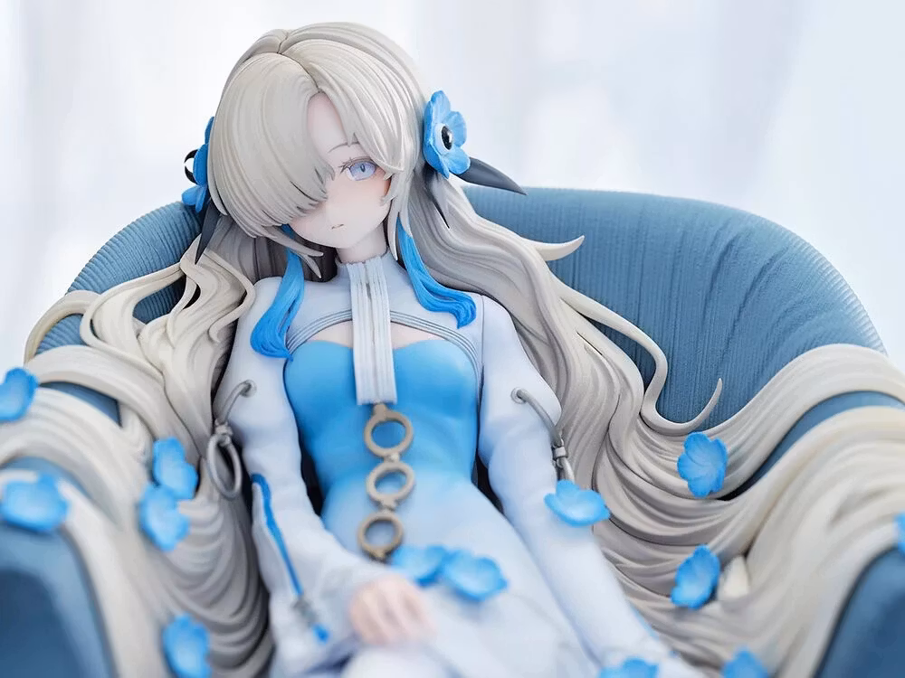 The shadows shift depending on the angle of light, creating a high-end feel akin to finely crafted interior decor. Thought also went into the colors, such as the white and blue base tones, translucent skin and eyes, and contrasting black boots that tightly bring together the different textures while recreating the atmosphere of the original illustration.