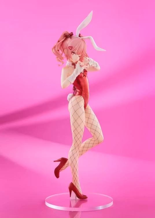 The long-awaited figurine of Rabbi, an original character created by the highly popular illustrator rurudo. Her wink and gestures are so cute they'll instantly pierce your heart! Her sparkling red bunny suit, long, slender legs, scattered hearts and cute nails all capture the artist's delicate work and has been faithfully recreated in 3D. Enjoy the love of Rabbi from various angles that can't be captured in an illustration.