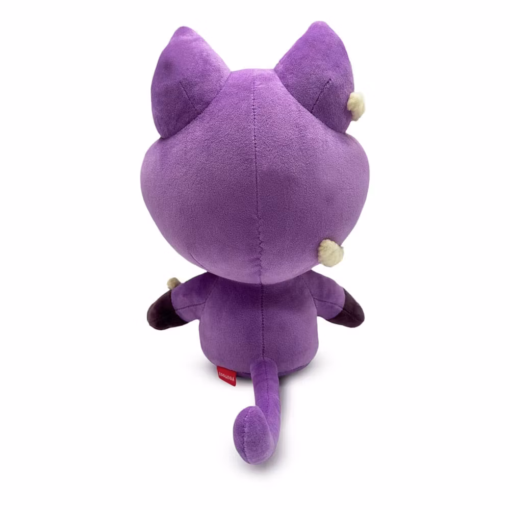 Catnap är tillbaka, men den här gången inte från en tupplur, utan en catfight! De sitter 9 tum långa med sin enorma öppna mun som sträcker sig till ett enerverande brett leende som avslöjar ett litet luftrör, mörka runda ögon pryder deras lila ansikte under långa spetsiga öron. Med en gyllengul halvmåne på bröstet med långa armar och ben som sträcker sig ut från en rundad kropp, händer och fötter är mörkare lila och en rundad svans sträcker sig från ryggen. Nedkörda och i ruiner, deras kroppar är fläckiga av skärmärken med stoppning som sticker ut inifrån när ett löst snöre dinglar från deras högra öga. Denna plysch är packad till sömmarna med 100% PP bomull och är gjord av en blandning av minky, sherpa och filtmaterial tillsammans med dragskodetaljer, helt perfekt för att gosa och ta en tupplur med... alltid!