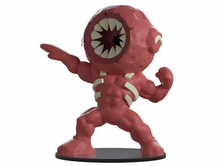 Shh, var väldigt tyst! Du vill inte varna det! Stormar in på Youtooz för att stå 4,1 tum lång med en arm utsträckt när den andra drar sig tillbaka till deras sida med en stängd näve, dess starka muskulösa röda kropp poseras med benen böjda och fötterna planterade mot marken. Släpp lös ett grymt vrål från dess cirkulära mun som är fylld med hemska knivskarpa tänder som spiralformar dess ingång, när en bröstkorg sveper sig runt dess sidor och över deras axlar. Utsidan av hans förpackning ser en lång korridor som är upplyst av lamporna som löper längs dess rader av hyllor. Medan interiören är en serie stirrande ögonglober som flyter på en svart bakgrund som efterliknas på den skyddande förpackningen eftersom dess figur kan ses genom det stora genomskinliga fönstret på framsidan. Detta samlarobjekt levereras i en matt, präglad, skyddande yttre hylsa och ett specialformat plastskydd för maximalt skydd under frakt.