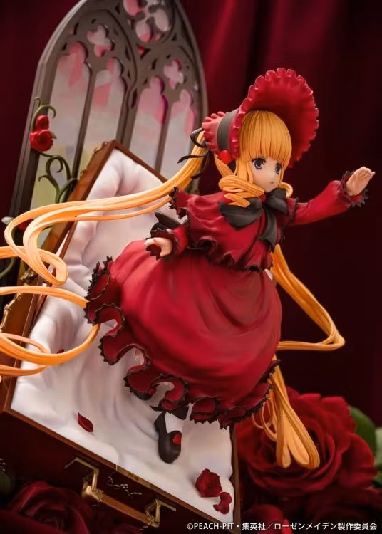 Från TV-animen Rozen Maiden kommer en figur av Shinku! Den ädla röda rosjungfrun, Shinku, har porträtterats med en sofistikerad design och fokus på att använda rika färger som utstrålar elegans. Bakgrunden i målat glas är en valfri display.