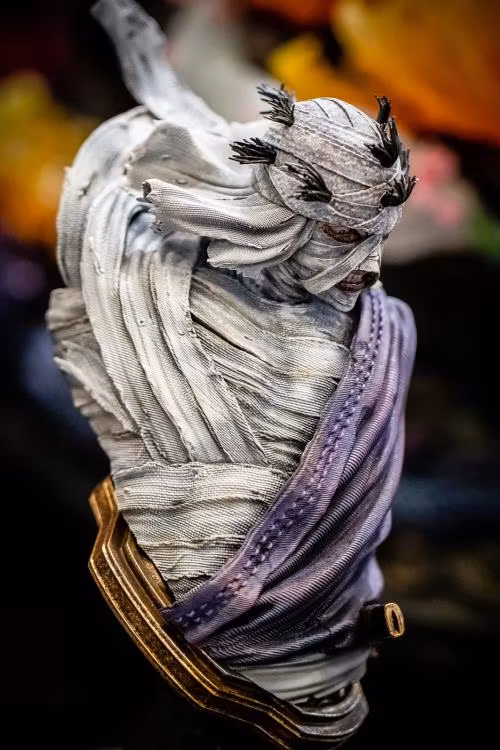 Figurama Collectors främsta samurajverk, Kenshin VS Shishio 25th Anniversary Edition Elite Exclusive, debuterar som världens första Rurouni Kenshin-staty. Detta mästerverk i skala 1/6 innehåller en rekordstor utbytbar torso för Kenshin, skapad under ledning av en professionell kampsportare av kendo och iaido. Kenshins två överkroppar porträtterar honom i hans gudsnabba battojutsu-form och släpper lös sin hemliga ultimata teknik, Amakakeru Ryu no Hirameki; Hans nakna bröst avslöjar Shishios brutala bitmärke och brännskadan som orsakades av hans fiendes krutexplosion på nära håll, Guren Kaina. Shishios Mugenjin katana har en avtagbar brandhylsa, och hans alternativa porträtt skildrar hans raseri och koncentration i stridens hetta. Båda karaktärernas utbytbara delar visas upp på ett unikt ställ med tsuba-vakterna på sina respektive katanas och Kenshins ikoniska X-formade ärr. I enlighet med den legendariska animens mest avgörande strid exploderar Inferno Arena av spänning när Kenshin svingar sin sakabato och släpper lös den uråldriga Hiten Mitsurugi-ryu kenjutsu-stilen mot sin efterträdare. Shishio slår sin gjutna metallkatana, Mugenjin, över marken och tänder på det mänskliga fettet som är indränkt i hans klinga, och förbereder sig för att avrätta den dödliga Homura Dama på Kenshin. Gömd bakom vraket av arenans dörr ligger den trasiga klockan som hålls av Shishios älskarinna, dess nedåtriktade visare symboliserar döden när Shishio pressar sig förbi sin kropps 15-minutersgräns och förtärs av lågorna. Under slagfältet gömmer sig kulturella accenter och detaljer från mangan. Eld och vind, Shishios och Kenshins elementära affiniteter, sveper över basen, med drivande sakura-blommor som hyllar animens motiv och mangans sista kapitel Cherry Blossoms in the Spring Time. En stor drake svävar runt piedestalen etsad med mönster från Edo-perioden, som representerar den våldsamma skönheten i Kenshins hemliga ultimata teknik Amakakeru Ryu no Hirameki och det dödliga vindvakuumet som lämnas i dess kölvatten. Detaljer: - Upplagans storlek: Begränsad till 950 st över hela världen - Storlek: ca 60 x 60 x 55 cm - Äkthetsintyg: signerat av Figurama Collectors VD Mr. Shanab, konceptkonstnär, Daniel Kamarudin, och 3D-konstnär, James W. Cain Inkluderar: Exklusivt konsttryck, 25-årsjubileum guldmärke, två unika bystställ, två kompletta torsos för Kenshin, två porträtt för Shishio, avtagbar brandhylsa för Mugenjin - Material: Polystone, Diecast Metal, PVC - Creative Director: Mr. Shanab / Figurama Collectors Development Team - Konceptkonstnär: Daniel Kamarudin - 3D-konstnär/skulptör: James W. Cain - Färgläggare: Three Eyes Studio
