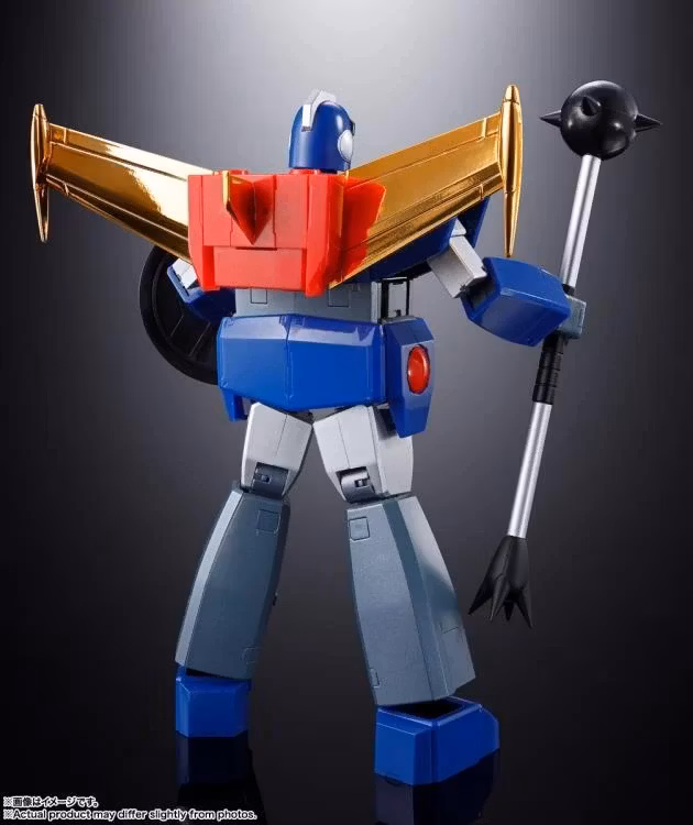 To celebrate the 45th anniversary of Robot King Daioja, Soul of Chogokin once again executes the “Cross Triangle”! Witness with your own eyes the ultimate combination of three robots! Ace Redder, Aoider, and Cobalter undergo an astonishing transformation and combination into the mighty Daioja! Renewed with chrome finishes on Daioja’s helmet crest and the wings of all three robots. Includes the Daioja Shield, Daioja Grapple, and Daioja Beam Bowgun. The Daioja Javelin used by Daioja is completed by combining the individual weapons used by the three robots.