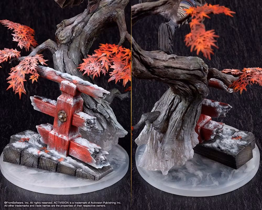 This epic masterpiece faithfully recreates the world of Sekiro, depicting the Sengoku period and its fantastic and vivid atmosphere at a size of over 400mm in 1/7 scale, down to its composition, shape, and materials.