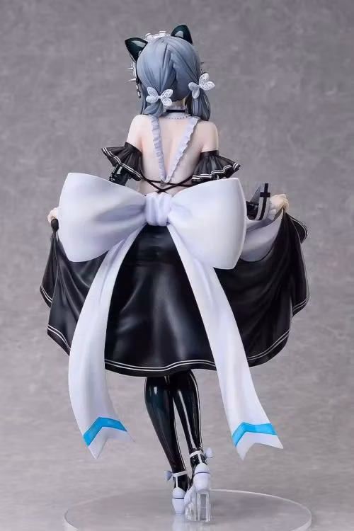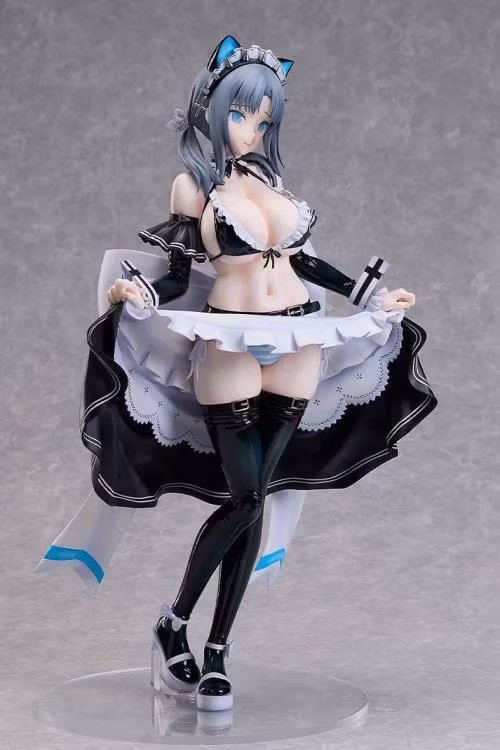 The outfit, designed by character designer and illustrator Nan Yaegashi, blends the allure of bondage with the dainty looks of her maid outfit—fusing contrasting fetishes—and has been faithfully captured in figure form.Visual highlights include Yumi's provocative lifted-skirt pose, an outfit design that emphasizes her gorgeous curves, the enamel-like texture of her outfit, and intricate frill details.