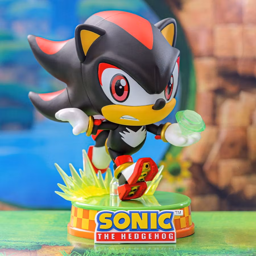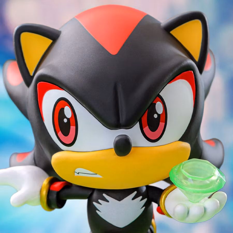 Sonic avbildas i sin ikoniska ljushastighetsinstrumentbräda med ett lekfullt leende. Hans signaturblå nyans och kännetecknande taggiga hår fångas perfekt i denna deformerade design, och han håller i guldringen som representerar hans äventyrliga anda. Shadow står rakryggad och självsäker med den kaosgröna smaragden i handen. Hans unika svarta och röda design, tillsammans med hans slående blick, framhäver hans gåtfulla natur, vilket gör honom till en viktig del av denna kollektion.